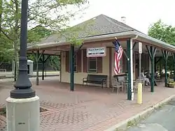 Speonk is an unmanned railroad station on the Montauk Branch of the Long Island Rail Road. It is located on Phillips Avenue at Depot Road in Speonk, New York, just north of Montauk Highway (CR 80). The station has two parking lots, one operated by the Long Island Rail Road, and the other operated by the Town of Southampton, both of which are free. It also lies adjacent to one of the largest railroad yards on Long Island's East End. This yard is mostly used to hold passenger consists, as a handful of trains terminate at Speonk rather than continue all the way to Montauk.