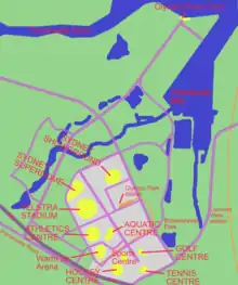 Map of Sydney Olympic Park, showing the sporting facilities there