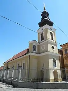 The St. George Serbian Church (Romanian: Biserica sârbească „Sf. Gheorghe”; Serbian: Српска црква Св. Ђорђе, romanized: Srpska crkva Sv. Đorđe) is a Serbian Orthodox church in the Fabric district of Timișoara. Located in Trajan Square, it is one of the three Serbian Orthodox churches in the city, along with the Serbian Orthodox Cathedral in Cetate's Union Square and the St. Nicholas Church in Mehala's Avram Iancu Square.