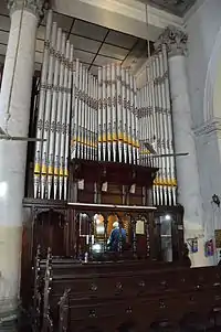 The pipe organ was installed in the early nineteenth century and remains the grandest in Calcutta. It was manufactured by William Hill & Son & Norman & Beard Ltd. in England. This company was famous for manufacturing of pipe organs for movie theaters in the silent era.[6]