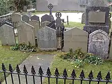 In the southeast corner of the churchyard is a group of twelve graves surrounded by railings. These are the graves of members of the Wordsworth and Quillinan families, and are listed at Grade II*.[12]