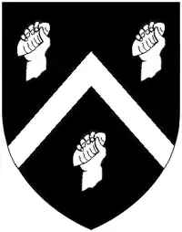 • Sir Henry Rolle (1545–1625), eldest son, married firstly Elizabeth Watts, daughter and heiress of Roger Watts of Somerset, secondly a Fortescue, daughter of John Fortescue (1525–1595) of Fallapit,[13] East Allington by his wife Honor Speccot (died 1606),[14] whose monumental brasses exist in East Allington Church.[15] His Exeter townhouse was the "Abbot's Lodge" (destroyed in 1942 during World War II bombing), in Cathedral Close within the precincts of Exeter Cathedral. He made alterations to that house and added decorative heraldic plaster escutcheons dated 1602, one of which showed Rolle impaling Watts, of six quarters (1st & 6th Watts: Argent, on a fesse vert between three eagle's heads erased sable as many crosses sarcelly of the first, the arms of Sir John Watts (died 1616), Lord Mayor of London in 1606)[16] the other Rolle impaling Fortescue.[17] The house had been the townhouse of the Abbot of Buckfast Abbey, which Abbey and much of its lands, including the Abbot's Lodge, had been acquired in 1545 by the patriarch George Rolle (d.1552) following the Dissolution of the Monasteries.[18] It had been used by George Rolle as his townhouse, by the name of "Buckfast Place" and was the place of his death in 1552. In 1609 he purchased from William Howard, 3rd Baron Howard of Effingham (1577–1615) several of the larger former holdings of Barnstaple Priory in Pilton and Bradiford, whose family had held the lands since the Dissolution of the Monasteries.[19]