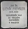 LUDVÍK PREMSLER BORN 1886 DEPORTED 1942 TO THERESIENSTADT MURDERED IN RAASIKU | Karlovo náměstí 9 50°01′40″N 15°12′04″E / 50.027715°N 15.20122°E |