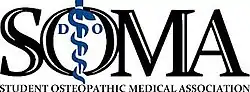 The Student Osteopathic Medical Association (SOMA) is a national, not-for-profit osteopathic medical organization founded to ensure a high quality of education for osteopathic medical students, to promote unity within the osteopathic medical profession, and to improve the delivery of healthcare by Doctors of Osteopathic Medicine (D.O.)[2] SOMA is the student affiliate organization of the American Osteopathic Association and works with all chapters to foster communication between government at the local and national levels and the osteopathic medical profession.[2]