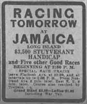 - ↑ "Man o'War Wins on Jamaica Track". Philadelphia Inquirer. June 23, 1920. p. 15. Retrieved June 21, 2020 – via newspapers.com.