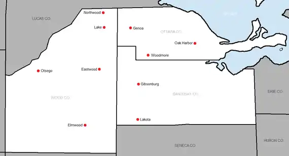 • For the 1972-73 school year, Eastwood, Elmwood, and Genoa leave the Northern Lakes League to form the SLL with Gibsonburg, Lakota, and Oak Harbor from the Sandusky Bay Conference, and Otsego and Woodmore from the Lakeshore Conference. Geographic location and comparable athletic competition were acknowledged as sound reasons for establishing the league.[2]