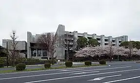 In 1964, a plan for a new Supreme Court building was created. It was decided that the building should be created in a modern style, and that the design be selected through a public contest.[19] Of 217 submissions, one submitted through a joint effort of 17 people including architect Shinichi Okada was chosen.[19][21] Construction began in 1971 and concluded in 1974.[19][21] The new and now current Supreme Court building is located at 4-2 Hayabusa-cho, Chiyoda, Tokyo.[20] It is of steel-reinforced concrete construction, and makes ample use of Japanese white granite, just as the previous Supreme Court building did.[21][20] There are five floors above ground and two floors below ground.[21]