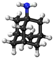Amantadine (brand names Gocovri, Symadine, and Symmetrel[1][16]) is the organic compound 1-adamantylamine or 1-aminoadamantane, which consists of an adamantane backbone with an amino group substituted at one of the four tertiary carbons.[17] Rimantadine is a closely related adamantane derivative with similar biological properties;[18] both target the M2 proton channel of influenza A virus.[9]