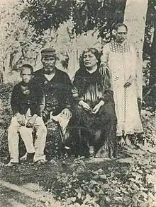 He was born in c.1855 with the name Hapaitahaa a Etau, at Avera, a village on the east coast of the island of Raiatea in the Leeward Islands, a part of the larger Society Islands group. He also initially bore the name Taraiupo'o, meaning "Headhunter", while his later adopted name Teraupo'o, meaning "This Head" in the Tahitian language.[2][3][4][note 2] Teraupo'o was considered a "chief of a minor lineage".[6]