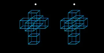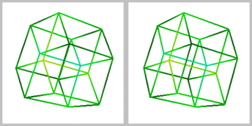 ![]() Stereoscopic 3D projection of a tesseract (parallel view) |
