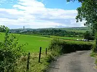 The Barony of Kersland was once extensive, however after the days of the Kerrs the land was parcelled out and the mid-superiority purchased by John Smith of Swineridgemuir (sic) after having been held by the Kerr family for upwards of 500 years.[1] In the 15th century the parish had four other baronies: Kelburne, Blair, Lynn and Pitcon.[2] The Kerslands proper sat on a bank shelving towards the River Garnock, comprising the properties of Kersehead, the Coalheugh-glen, the Tod-hills, the Brown-hills, the Davids-hills, and Auchengree, amounting to about 700 acres of arable land.[1]