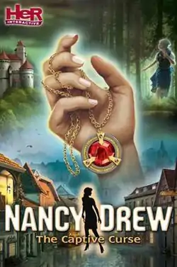 The Captive Curse is the 24th installment in the Nancy Drew point-and-click adventure game series by Her Interactive. The game is available for play on Microsoft Windows and Mac OS X platforms. It has an ESRB rating of E10+ for moments of mild violence and peril.[1] Players take on the first-person view of fictional amateur sleuth Nancy Drew and must solve the mystery through interrogation of suspects, solving puzzles, and discovering clues. There are two levels of gameplay, Junior and Senior detective modes, each offering a different difficulty level of puzzles and hints, however neither of these changes affect the actual plot of the game. The game is loosely based on a book entitled Captive Witness (1981).[2][3]