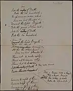 At the suggestion of Jane, Lady Franklin, Tennyson sent a thousand copies of a single-sheet version of the poem to be distributed among soldiers in the Crimea.[7] For this he rethought the revisions in Maud and Other Poems, and this rethought version was used for the second edition of Maud, in 1856.[8]