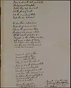 The poem was written after the Light Cavalry Brigade suffered great casualties in the Battle of Balaclava. Tennyson wrote the poem based on two articles published in The Times: the first, published on 13 November 1854, contained the sentence "The British soldier will do his duty, even to certain death, and is not paralyzed by the feeling that he is the victim of some hideous blunder," the last three words of which provided the inspiration for his phrase "Some one had blunder'd."[3] The poem was written in a few minutes on 2 December of the same year, based on a recollection of The Times's account;[4] Tennyson wrote other similar poems, like "Riflemen Form!", in a very similar manner.[5]
