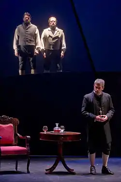 The opera has a modern resonance of the story's theme of “immigration to America and the difficulty and suspicion with which newcomers are greeted.”[2] The Garden of Martyrs musically dramatizes the last five days of the men's lives. The protagonist is Father Jean Cheverus, a French immigrant priest who travels from Boston to Northampton to comfort the men—even though he believes them guilty. Cheverus’ journey of transformation is the heart of the opera.[3]