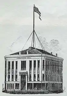 The Rochester Ladies' Anti-Slavery Society was founded in 1851. The inaugural meeting between six women took place in Corinthian Hall on August 20.[8] Frederick Douglass had moved to Rochester in 1847 in order to publish his newspaper The North Star.[9][10] He had previously lived in Boston, but did not want his newspaper to interfere with sales of The Liberator, published by William Lloyd Garrison.[10] Douglass had spoken at Corinthian Hall in the past. He had delivered a series of seven lectures about slavery there in the winter of 1850–51.[11] Additionally, he had spoken there less than three months prior to this speech, on March 25. In that speech, he cast the abolitionist movement as being engaged in a "War" against defenders of slavery.[12]