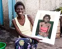 Concillia Muhau, who is featured in the film, with an earlier picture of herself[1]