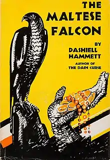 The Maltese Falcon is a 1930 detective novel by American writer Dashiell Hammett, originally serialized in the magazine Black Mask beginning with the September 1929 issue. The story is told entirely in external third-person narrative; there is no description whatsoever of any character's thoughts or feelings, only what they say and do, and how they look. The novel has been adapted several times for the cinema.