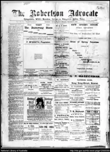 The Robertson Advocate was an English language broadsheet newspaper published twice weekly, on Tuesdays and Fridays,[1] in Mittagong, New South Wales, Australia.[2] In 1924 the paper changed its name to The Robertson Mail.