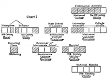 The School and Society: Being Three Lectures (1899) was John Dewey's first published work of length on education.[1] A highly influential publication in its own right,[2][3] it would also lay the foundation for his later work. In the lectures included in the initial publication, Dewey proposes a psychological, social, and political framework for progressive education. Notably, this includes collaborative practical experimentation as the central element of school work. He argues that the progressive approach is both an inevitable product of the Industrial Revolution and a natural fit with the psychology of children. A final chapter details some of the experiments done at the University of Chicago Laboratory Schools.