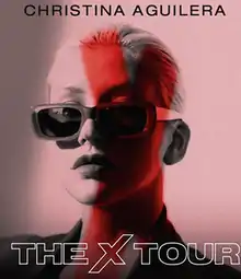The X Tour (a play on the singer's nickname, Xtina) was the sixth concert tour by American singer Christina Aguilera, in support of her eighth studio album, Liberation (2018). Led by LiveNation, it was surprise announced on the same day as the ticket sale by Aguilera herself on March 4, 2019, and serves as the European counterpart to The Liberation Tour the year before. The tour was scheduled to run concurrent with Aguilera's own Las Vegas concert residency, Christina Aguilera: The Xperience, with the tour running during the breaks of the residency. The tour was split into two legs, with the first leg consisting of 15 shows taking place across Europe, and an additional three in the second leg taking place in Mexico.[1][2][3][4]