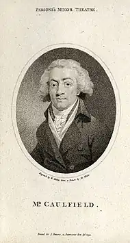 He was the son of an engraver from Clerkenwell. Susan Caulfield the mistress of John Burgoyne may have been his sister but she was not his mother nor was Burgoyne his father as some historical sources claimed.[1] After appearing in the provinces, notably at Bath and York, he made his debut for the Drury Lane company in 1791 in The Cave of Trophonius by Prince Hoare. He was a prolific figure in the West End, working at both Drury Lane and the Haymarket. Amongst his roles was that of Uter in Vortigern and Rowena (1796) by William Henry Ireland, a play fraudently claimed to be by Shakespeare. He attracted attention after beginning an affair with Maria Bland, a Drury Lane singer who left her husband actor George Bland, the brother of Dorothea Jordan.[2] He lived with Maria for a decade, during which time he also appeared at the new Theatre Royal, Bath at Buckingham in Richard III.[3]