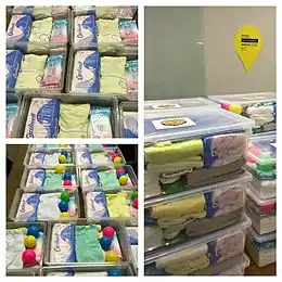 The box further doubles up as a cot the newborn baby can sleep in.[6] It is aimed at providing a safe sleeping environment for the baby. It has been shown that providing the infant with his/her own bed, instead of sleeping with the parent, helps reduce the risk of death due to suffocation or falling in between the mattress and the headboard.[7][8]
