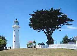 A lighthouse was constructed near the southern end in 1864, and remains in operation. In 1956, a xenon light source was fitted to the lighthouse, creating the most powerful light-beam achieved at the time by a New Zealand lighthouse. It had an output of 11 million candle-power and a range of 58 nautical miles, making it one of the most powerful lights in the world; most lights shone for 27 nautical miles.[5]