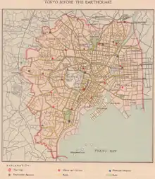 Map of Tokyo City before the Great Kanto earthquake of 1923