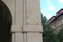 After transition to democracy the perception of Rodezno changed dramatically. In the current Spanish public discourse he is associated mostly with the most repressive phase of Francoism.[281] Naming of the Pamplona plaza was subject to heated public debate in Navarre and elsewhere following adoption of ley de Símbolos de Navarra and ley de Memoria Histórica. The 2008-2009 discussion, involving present-day political parties and related to some present-day political issues,[note 83] has eventually led to renaming the plaza to "Conde de Rodezno", an aristocratic title formally not associated with any individual,[note 84] until in 2016 it was renamed to "Plaza de la Libertad".[286] The former Pamplona mausoleum erected during Francoism to honor the fallen requetés has been renamed to "Sala de exposiciónes Conde de Rodezno"[287] but in public it prefers to be named "Sala de exposiciónes". In unrestrained cyberspace Rodezno is at times referred to as "fascist to the core".[288] In 2008 Audiencia Nacional, the Spanish high tribunal, launched formal bid to acknowledge Rodezno as guilty of crimes against humanity during his tenure as Minister of Justice and afterwards, but the motion bore no fruit due to procedural reasons.[289] Judge Baltasar Garzón was later charged with perversion of justice for launching the bid, which was defined as an error by the Supreme Court of Spain.[290] In 2010 a group of authors associated with a Pamplonese Ateneo Basilio Lacort published a vehemently militant work which presents Rodezno as a criminal.[291]