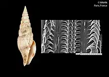 Shell and radula of Tosapusia isaoi (specimen at MNHN, Paris)
