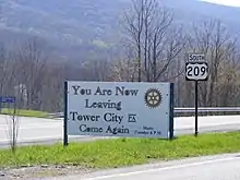 Sign constructed by the Rotary Club on Rt. 209 South outside Tower City.