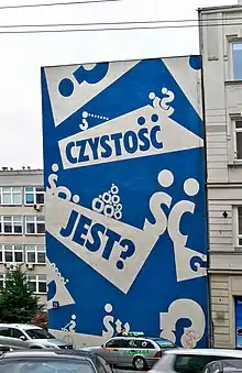 "Is it clean?" - a mural on the wall of Warsaw Sanitary-Epidemiological Station