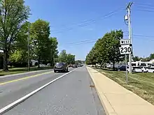 On June 28, 1965, the American Association of State Highway Officials (AASHO) approved the elimination of the US 230 designation.[19] US 230 was decommissioned and replaced with PA 230. The western terminus of PA 230 was moved to US 22 Byp. (now US 22) at the intersection of Cameron Street, Maclay Street, and Arsenal Boulevard while the eastern terminus was at an interchange with the US 30 freeway northwest of Lancaster, with US 30 having replaced US 230 on the freeway running to the north of Lancaster.[20][21] In 1969, PA 230 was upgraded to a freeway between Salunga and PA 72.[20][22] By 1972, the eastern terminus of PA 230 was cut back to its current location, with PA 283 replacing the route on the freeway running east to US 30 in Lancaster.[23] In the 1970s, PA 230 was extended north along US 22 to an interchange with I-81/US 322 at the northern edge of Harrisburg.[24] The concurrency with US 22 was removed in the 1980s, leaving the western terminus at its current location.[25]