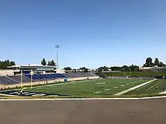 Toomey Field is located on the campus of the University of California, Davis in unincorporated Yolo County, California. The Woody Wilson Track is located in the stadium and it is home to the UC Davis Aggies track and field team.[7] At the northeast corner of campus, Aggie Field opened in 1949 and was home to the Aggies' football team through 2006. The first game, on November 18, was a 123 victory over Chico State. The record for attendance at the stadium was set on November 12, 1977, with 12,800 for a 3721 victory over Nevada. The Aggies' all-time record at Toomey Field was 192–86–7 (.686). The stadium was renamed in 1962 in honor of Crip Toomey, who served as athletic director at UC Davis from 1928 until his death in 1961. Toomey graduated from UC Davis in 1923 and also served as the Aggies' basketball coach and football coach from 1928 to 1936.[8] The natural grass playing field (now track infield) was aligned north-northwest to south-southeast at an approximate elevation of fifty feet (15 m) above sea level.