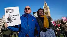 The campaigner Jack Monroe warned that the crisis could be fatal for some of the children of low-income parents, and asked the government to increase benefits in line with inflation.[41] UK civil society continues to respond to the hardship caused by the cost-of-living crisis, such as by running foodbanks, though some foodbank managers report both extra demand but also lower levels of donations, as the crisis means some people who could previously donate can no longer afford to do so.[42][43] On 18 June 2022, thousands of workers marched to Parliament in London to demand further government action for the cost-of-living crisis.[44]