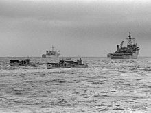 Monticello sailed on 18 February 1962 in JTF 8 for nuclear weapons tests at Christmas Island, first carrying cargo between Christmas Island and San Diego, and then acting as command ship during tests of antisubmarine weapons, as part of Operation Dominic.[1] In June, she sailed again to Christmas Island to aid in closing down the test operation, and continued to a second 7th Fleet tour of duty highlighted by a large amphibious exercise at Okinawa. She returned to San Diego and a program of training with Camp Pendleton marines, necessary overhaul, and refresher training early in December.