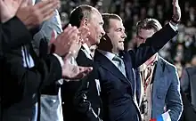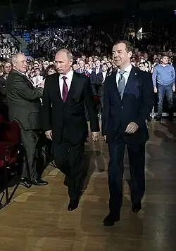 According to the decisions of the XII Congress of United Russia, adopted on 24 September 2011, in the Duma elections, the party's pre-election list was headed by the President of the Russian Federation at the time, Dmitry Medvedev,[42][43] and in the 2012 elections, Vladimir Putin became the presidential candidate.[44]