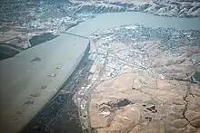 Aerial view of the US Reserve Fleet at Suisun Bay in 1995