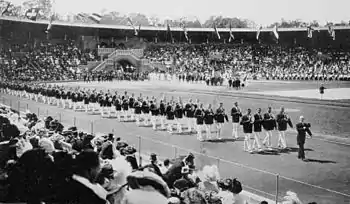 - ↑ "Olympic Games Chronology". US Olympic Team. Archived from the original on 2006-11-23. Retrieved 2006-12-06. 2,490 of all participating athletes of all nations were male, and 57 of the athletes were female.