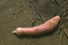 Urechis caupo is a species of spoon worm in the family Urechidae, commonly known as the innkeeper echiuran,[2] the fat innkeeper worm (because their tunnels often contain other animals),[3] the innkeeper worm,[4] or the penis fish.[5] It is found in shallow water on the west coast of North America, between southern Oregon and Baja California,[6] where it forms a U-shaped burrow in the sediment and feeds on plankton using a mucus net.[7]
