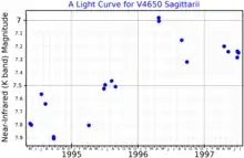 A near-infrared (K band) light curve for V4650 Sagittarii, adapted from Glass et al. (1999)[6]