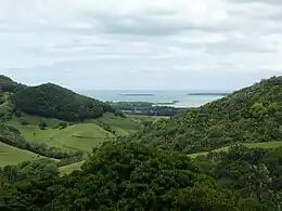 Ferney La Vallée is located north of the town of Mahébourg in Grand Port District, Mauritius. Its entrance is off the B 28 road, just north of Ferney Falaise Rouge, not far from the Vallée de l'Est conservation area. The valley's land-form is largely composed of Tertiary volcanic series with a range of acidic and clay soils. It is wind-facing and its climate is humid throughout the year.[1]