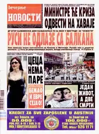 Večernje novosti (Serbian Cyrillic: Вечерње новости; Evening News) is a Serbian daily tabloid newspaper.[5] Founded in 1953, it quickly grew into a high-circulation daily. Novosti (as most people call it for short) also employs foreign correspondents spread around 23 national capitals around the globe.