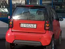 - Personalised plates can be bought in the format of three letter-three number (~350 €) and four letter-two number or five letter-one number (~1300 €).[14] Plates are linked to the buyer and may be transferred to a new vehicle. Offensive or misleading texts are not allowed.