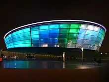 The Scottish Exhibition and Conference Centre, located in the West End of the city, hosted the Wrestling, Judo and Boxing, as well as the Main Press Centre and the International Broadcast Centre, benefiting from its strategic position adjacent to the headquarters of BBC Scotland and STV at Pacific Quay. The Clyde Auditorium hosted Weightlifting, whilst the new SSE Hydro was used for the Gymnastics and Netball events.[10] Kelvingrove Park, also in the city's West End, was the venue for Bowls and has five bowling greens installed for competitive use. A comprehensive upgrade and refurbishment of the park was completed ahead of the Games.[11] Scotstoun Leisure Centre hosted Table tennis and Squash.[12]