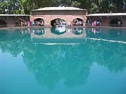Verinag (/ˈvrnɑːɡ/) is a town named after and famous for the Verinag spring and Mughal garden, near Anantnag city in the Anantnag district of the union territory of Jammu and Kashmir, India. It is a notified area committee with tehsil status (Shahabad Bala Verinag) and is about 26 kilometers away from Anantnag and approximately 78 kilometres south-east from Srinagar which is the summer capital of the union territory of Jammu and Kashmir. Verinag is also the first tourist spot of Kashmir Valley when travelling by road from Jammu, the winter capital of the union territory of Jammu and Kashmir towards Srinagar. There is an octagonal stone basin at Verinag Spring and an arcade surrounding it which were built by Mughal emperor Jahangir in 1620 A.D. Later, a beautiful garden next to this spring, was laid out by his son Shah Jahan. This spring is known to never dry up or overflow. Verinag Spring is also the major source of river Jhelum. Verinag Spring and Mughal Arcade surrounding it is officially recognized by Archaeological Survey of India as a Monument of National Importance.[4]