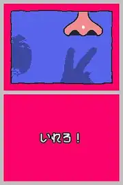 The project was bogged down and teetering on the edge of an abyss when they were going to submit their final proposal. Mori ran into a programmer on her way home, who told her that the camera was actually running the whole time someone was playing the game, displaying a silhouette but also capturing the player in full detail. She thought that people would be happy to see that at the end, and they added it to the final proposal on the last day. The scenes replaying the players' actions were created as a way to make players say "You got me!" and as a neat way to play the game without touching the DSi. The developers thought that the idea was neat, and though games like it have been done before, they've been a little embarrassing. Due to this, the players' responses are "Oh, I see" as opposed to "Oh, this is interesting..." The proposal also mentioned that players could make funny faces while playing to add to this feature, which the developers sounded like a lot of fun. The developers went on a trip to Okinawa, Japan and took pictures using an underwater camera. While no one wanted to have their picture taken at first, people came to see what was going on. The developers found the psychology of this to be interesting, and it connected to WarioWare: Snapped!. The finale scenes were not implemented into the game yet, one developer commenting that if no one had implemented it, the project would have been cancelled. It couldn't implement it simply from a proposal, and had to make a working model first. When they tested it, they found it very fun, and decided to show it to Iwata as soon as possible. The response from other Intelligent Systems employees to this feature was positive, with people bursting out laughing. Sugioka commented that even the serious employees, practically "busted a gut laughing".[12] While the developers designed the minigames, they also thought of what kinds of gestures would be good for resulting in funny videos. An example of a minigame is one in which players shake their heads from side to side. This was something people do not want others to see them do, and rarely are able to see themselves doing it, so they wanted to implement a game that involves this. They had people test the minigames, watching them as they played.[11] Because some people do not enjoy having their pictures taken, they made it so that the game does not save images from game to game or when the system is closed. The guidelines for the Nintendo DSi were that if a picture is taken, the camera has to make a sound. However, if the game kept making a sound while players played it, it would interfere with the gameplay. The problem was addressed by erasing the videos and photos. If the player does not successfully complete a game, no photos will be taken. Abe stated that if it were a retail game, it may never have been released. Because a game must have a certain amount of content to justify being sold at retail, it was distributed through the DSiWare service for 500 points.[11]