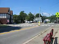Although the region for Bolton and Bolton Landing is large, there is only one state-maintained route, Route 9N, and there is County Route 11 (Bolton-Riverbank Road), which is a connector to Exit 24 on the Northway.[41] Only two county or higher-level maintained roads traverse the hamlet of Diamond Point, Route 9N and County Route 35 (Diamond Point Road), which connects 9N to the Northway (Exit 23) and U.S. Route 9 in Warrensburg.[40] New York State Route 8 enters the county at Johnsburg, entering into the Town of Chester, where it merges with U.S. Route 9 for almost four miles, splitting off at the Landon Hill/Route 8/Route 9 intersection. New York State Route 8 terminates at an intersection with New York State Route 9N in the center of Hague.[40] There are several state-maintained and county-maintained roads in the Warrensburg area. These include the termini of both New York State Route 28 and New York State Route 418 at US 9. There are also a few county routes, including County Route 4 in Athol and County Route 10 (Horicon Road) in Warrensburg. Route 10 continues eastward, terminating in Bolton Landing.[41]