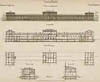 The Petersburg Train Station (Polish: Dworzec Petersburski) was built in 1863 as the final terminus of a new railroad linking Warsaw with Vilnius and St. Petersburg. The building itself was designed by Narcyz Zborzewski. As the line used Russian gauge while another major railway line operating in Warsaw at the time (namely the Warsaw–Vienna Railway) used Standard gauge, the two could not have been connected. To allow passengers travelling from Vienna to St. Petersburg easier access to both terminals a horse-drawn tramway line was opened soon after the railway line's completion, thus giving birth to Warsaw's tramway network. The original train station had been blown up by withdrawing Russian troops in 1915 during World War I.